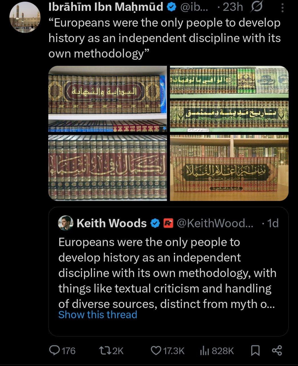 Almost all the responses to my thread are just people pointing out large historical works written outside the West, which misses the point.